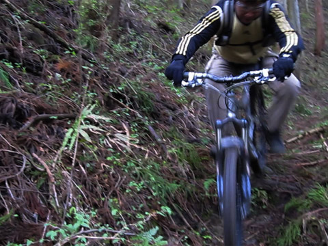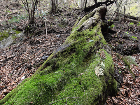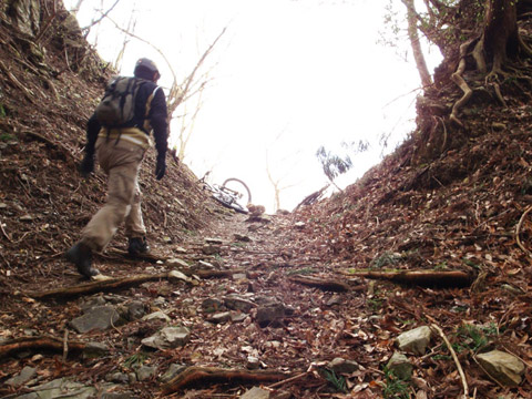 後半峠以降は尾根上稜線に切り替る。暗い林間トラバース連続を一喜一憂にひた駆ける。その通常山道に乗った途端、緊張解けたせいで油断し各位ズッコケ三昧。果てながら笑いが止まらぬスリルに酔う。日が長くなり幸いだったが里に着くまで4時間も掛かった。