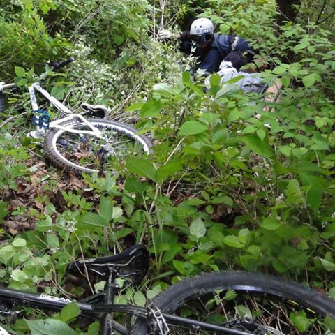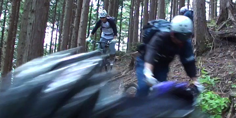以降南下する支尾根DHでは倒木が多かったが、先行く難所でJシリーズ参戦DHマン&トライアルマン各位の凄技も披露頂き、梅雨入前のおそらく最後の快晴のもと快活に走り納めが出来たのだった。