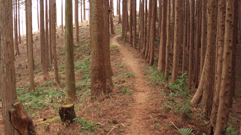 当初予定では西行程40~50分かかるはずが、元気なDHレーサー君のペースに呑まれ、ヘッドカム2名は大気圏突入気分でキリキリ舞い。あげくは30分弱で降り立ってしまうのだった。終盤の麓付近は薄暗らく全体の3/4しか撮れなかったが、この西古道での午後の部を[5-FALLS=転落者5人]としてまとめた。