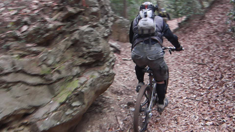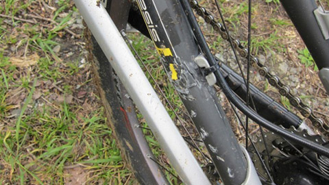 以降深い森を過ぎてからはいたってスムーズに往く。と思いきや終盤で後進隊が遅れるので憂慮し待つが、一人はシートポストを破損し、もう一人はフルサスのスイングアーム・カーボン部をへし折る惨状に見舞われる。そんなの見たことなく驚いたが、もう修理不能なのでとどめに蹴り壊してみた。