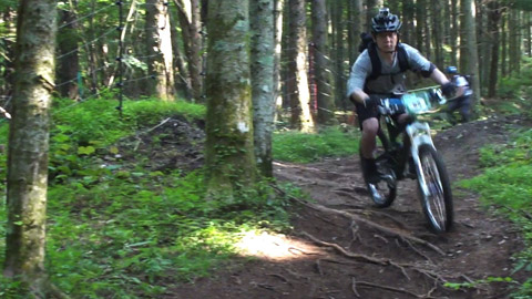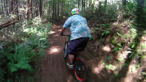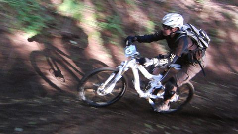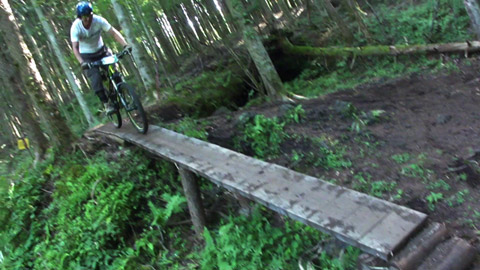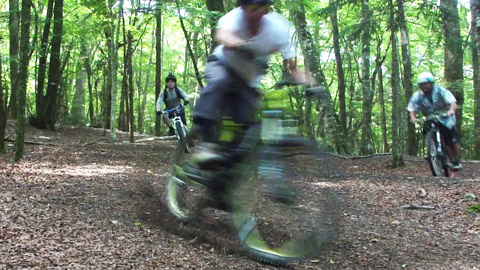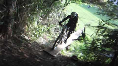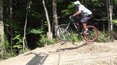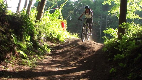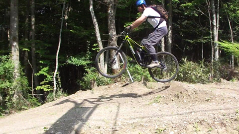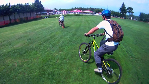 乗り馴れたつもりで調子に乗りつつ自分が芝上滑りで薮に突っ込んだり。また岩石につまずきコースアウトする者有り。そして新ジャンプでのキッカーに突進し跳躍挑戦したり。と休む事も忘れたようにはしゃぎ駆けるのだった。全5ルートを巡るうち3時間位遊ぶには充分なアトラクション的コース作りだと思えた。