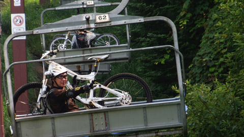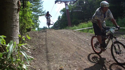 さて午後の部はふじてんDHへ。富士宮側イエティもMTBルートを作る噂を聞いたが実現されてないようだ。今季のふじてんは新コースも増えたようで期待を持てるもの。ここの常連クマ君の案内で新ルート・ポイントなど教わりながら、何度もリフトに揺られ立て続けに駆けまくる。各道程距離は1kmくらいで短いながら工夫を凝らしたルート設定である。