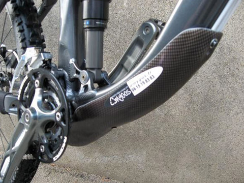 昨8月初めの当方ロッキーマウンテンAltitude完成後に→山走同志J1Low君よりフレームガードの薦めを賜る。昨今新鋭フルサスモデルは低重心化でBB位置が下がったり、ダウンチューブ下方のハト胸仕様が増えたという。その煽りでかロックセクションでBB前チューブが凹んだ本人愛車写真を送ってくれた。
