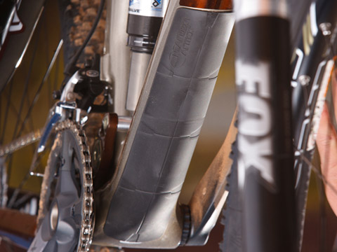 タイミングよくMountain Bike ReviewサイトでDamage Afterなる課題のフォーラムを見ていた。そこでは参加者ダメージ自慢大会を開催していたが、中にはきちんと対処する人もみえた。ダメージを喰らうフレーム箇所は[ダウンチューブ/トップチューブサイド/チェーンステイレフト]が多いようだ。またこの頃ハイグレードモデルには最初から専用チェーンステイやダウンチューブガードが備わるモデルも有りその仕上がりは優れたものと感心する。
