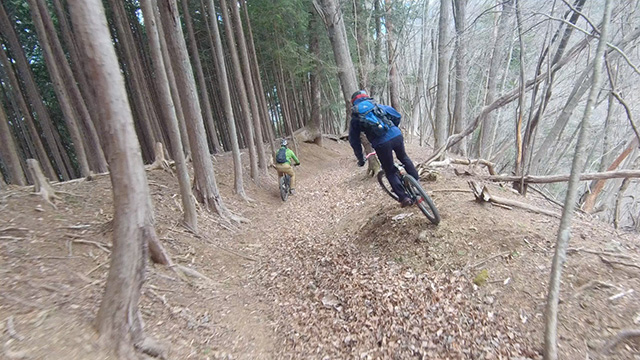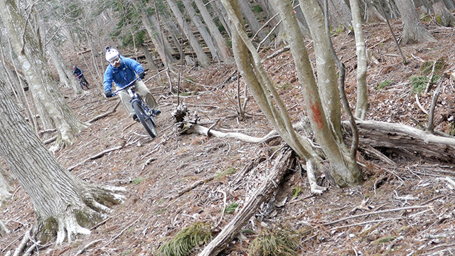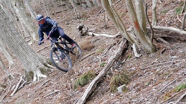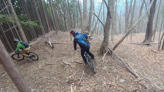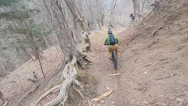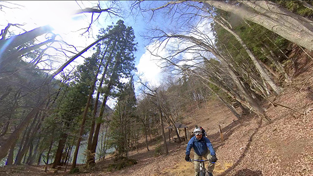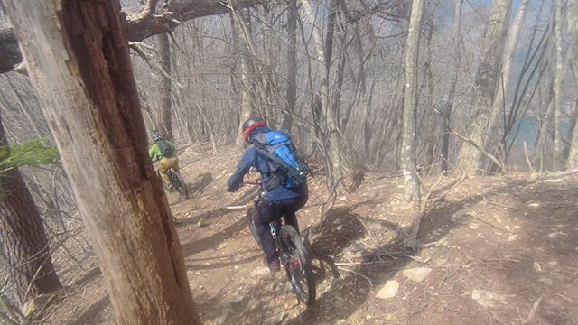 そこからは緩やかな下降を始めるが、二年前台風での倒木断片が未だ残る。広大尾根なので巨大迷路のように避けながら忙しく進む。登り返しを経て急降下で林道駐車場に到着。またここから未開な謎尾根に突入。迂回路より尾根筋を見つけるのに手間取るが、乗り上げ下方を見ると傾斜が深いことワクワクしながら滑降して行く。小上り劇降りを繰り返しアタック難度上がりステージ突破するPRGゲームのごとくだ。いつもより勇気を振り絞り集中力が必要だが無事に湖畔に到着。ドタバタしながらも一心不乱で巡り非日常シーンを思い切り楽しめた。