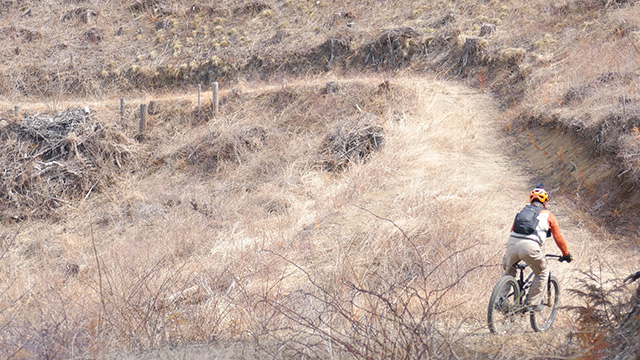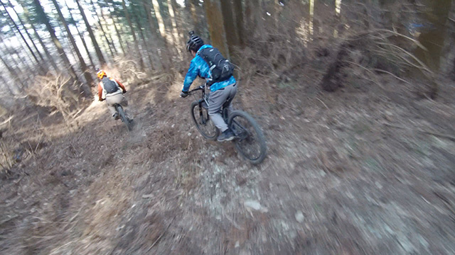 そして午後の部は同頂より今度は東降下の初ルート。午前のようなロスをせぬようキョロキョロと注意をはらう。要所で位置確認をするがそんな心配は不要であった。あらまぁ拍子抜けするほどスムーズに駆ける。幾ら何でもこんな調子よく走り続けられる訳ないだろう?と疑いつつ奮起狂喜し流されるようだ。もう午前苦行のご褒美くらいに思い呆然とその快楽享受するのである。ゴールでは小高い丘に登り皆でフキノトウを見つけ摘んで歩いた。結局2ルートで誰一人会うことはなかった。ポツンと一本道周遊は無事終了。