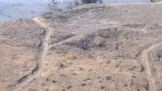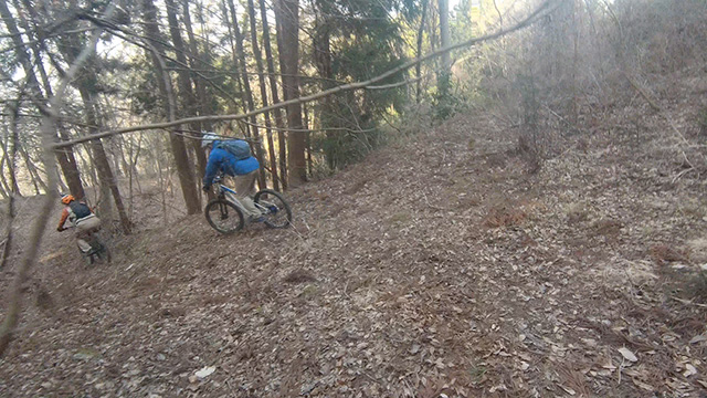 3/13武蔵國辺境で以前より狙った地図にないトレイルを目指す。衛星写真だけを手がかりに、ルートの実態を徹底調査しその成り立ちにも迫っていく。それらは廃道であるか?その地へと赴くしかない。午前ルートは巨大伐採地より始まるがしかし途中で道筋ブチ切れて崖下に落ちそうになる。登り返し正規ルートを辿るが愉快に下れると安堵していた。だが行く手には段々と枝からみや激やせ尾根だったり冒険的行動となる。あげく最後の分岐を間違え尾根腹に落ち全行程1/4ロストしてしまった。まあ久々の探索は良き刺激となりけり。