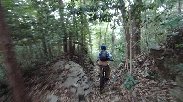 10/18キャニオン・ニューロンの主N君が完成車受領とともに早速山行きへ。奥武蔵辺境にてテストラン「山降ろしの義」へ向かう。天候そこそこ曇ったり晴れたり。本人期待を持って押し上げたり担いだり意気揚々なり。尾根を乗っ越し悠々と駆けるうち従来モデルより優れる剛性感に感心していた。ピボット各部精度の高いシールドベアリング搭載・精巧なスイングアームともにガタツキが全くない。上級モデルとなんら遜色ないクオリティに歓喜するのだった。