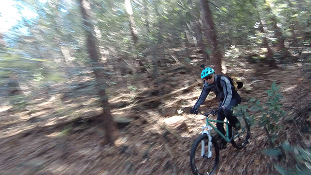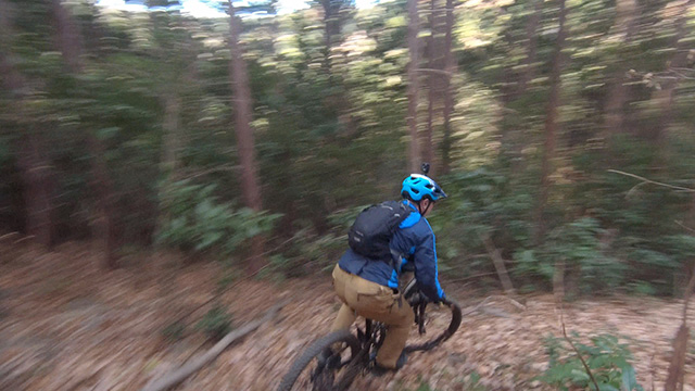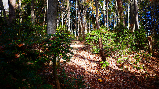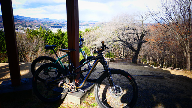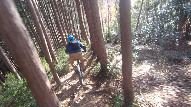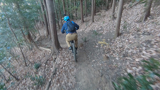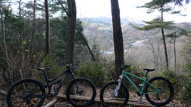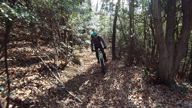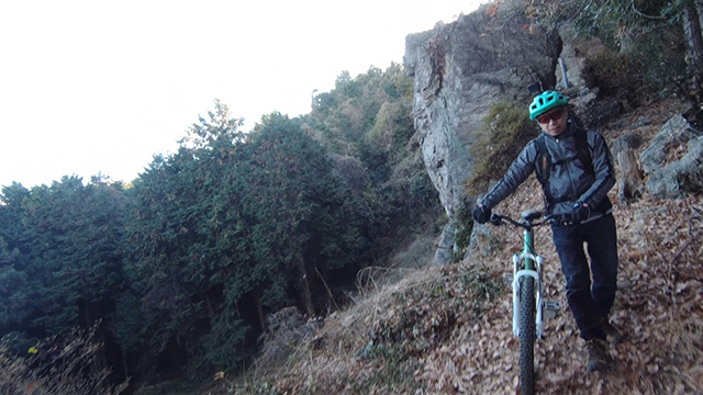 12/18久しくの同志K君とで小川盆地の周囲にある山系に出向いた。低い山が東西方向に連なる稜線が複数見られるが、界隈のなかでも三日月状の長めの尾根に這い上がる自走トライアルになる。舗装林道を漕ぎ上げ三つの頂を登り返しながら行く。日当たりの良い冬枯れの落葉の古径は心地良いものだが、超シングルトラックで狭い立木でハンドルを取られることもある。激下りの根張りも多くあった。夏に探索した後半路は藪も失せ快活に駆け抜けられた。