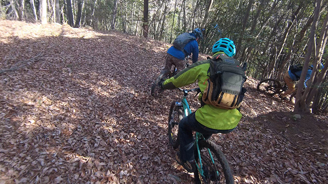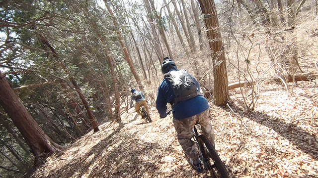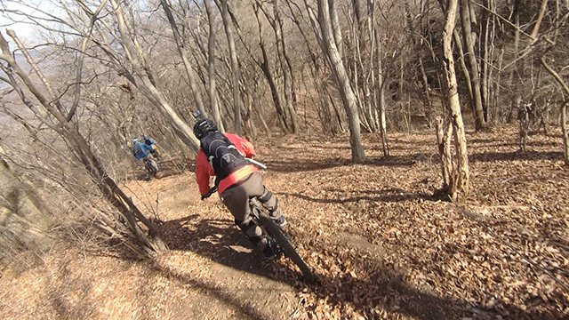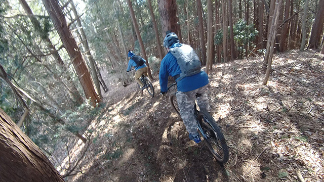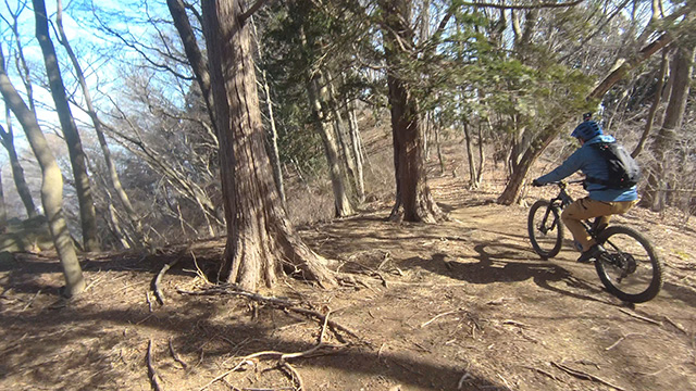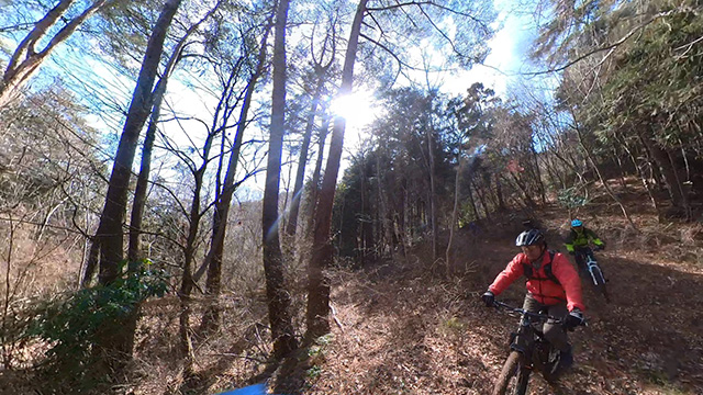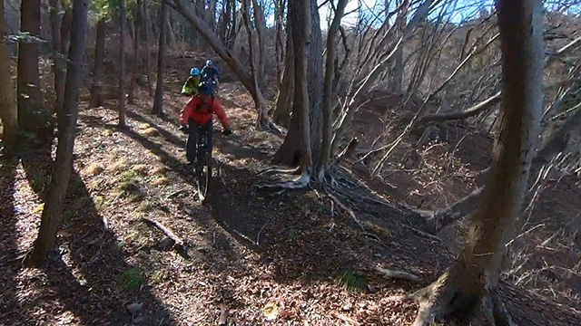 午後は馴染みの別ピークにてエナジー補給の後、同山系最速トレイルで体ほぐしにかかる。たった20分の劇降下だが痛快さでやる気アップの思い。次点も未知の近年整備されたという或る支尾根にたどり着く。登坂林道も地図に無くなお凍結で苦心する。削られた林道峠法面より登頂するが登り返しもありやっとの下りスタートは暗がり森林の中。道筋は腐葉土質で岩場少なくトレランナーには最適だろうに。立木間隔が狭いルートもあり広ハンドルではヒットが多し。しかし後半は緩やかな傾斜で美しき並木を彷徨い行く感じで、疲労感が浮遊感に変わるようなフィニッシュで無事ルート完遂となる。