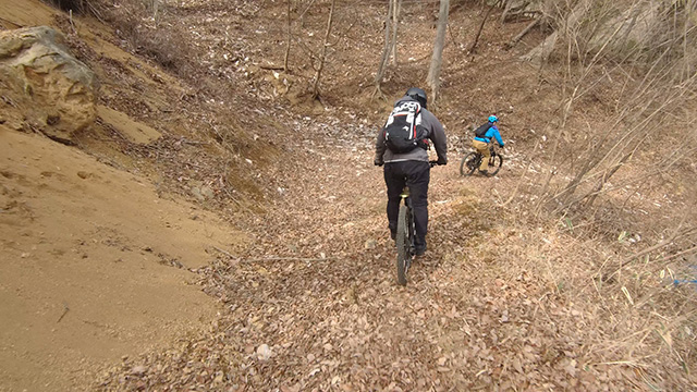 3/12外秩父山系の先月に新規探索できた境界尾根に再訪。当日目的は前回終盤に見逃したフィニッシュラインを完遂するため。そこで月初に弊活動に興味を示して頂いたN氏とも初回参加を約束していた。だが集合現地に登場されたのに「ギックリ腰気味で走行できず」と活動断念。連絡もらえれば了解したのだが、会って礼とお詫びをしたかったとのこと。その律儀さに触れて「楽しみにしてくれたのだなぁ」と感心。そこで第1ピークまで同行してもらい行動形態を伝えたら、「下り主体で有れば乗れたかも!」とN氏愕然とする。次回再会できればより良きトレイルにいざなうと約束し見送られる。我らは当山系最速トレイルを果敢に巡ったのだった。