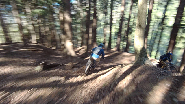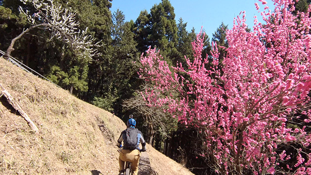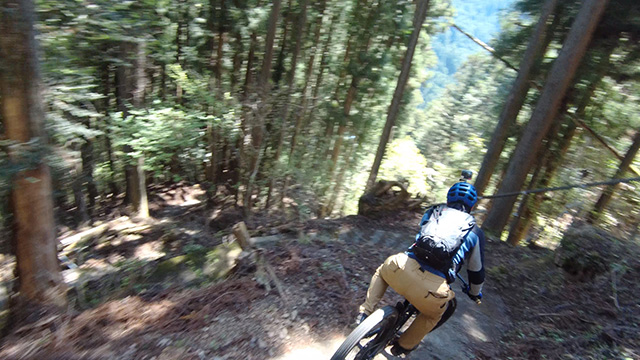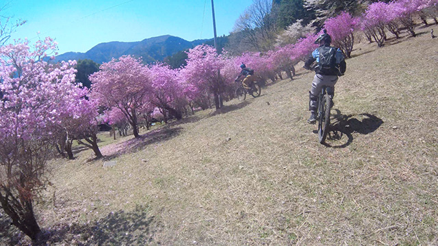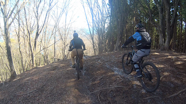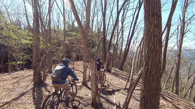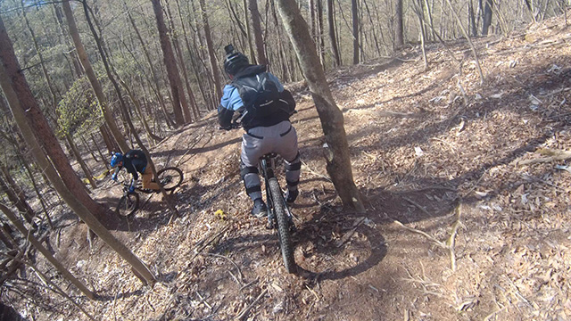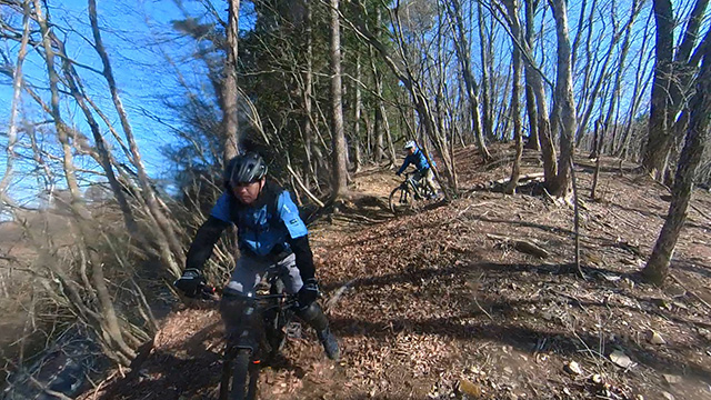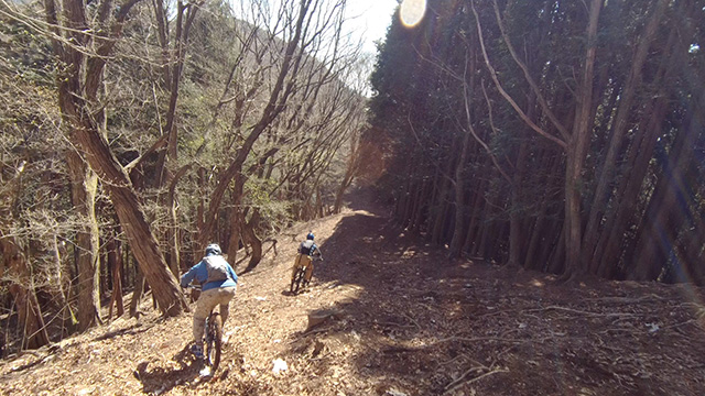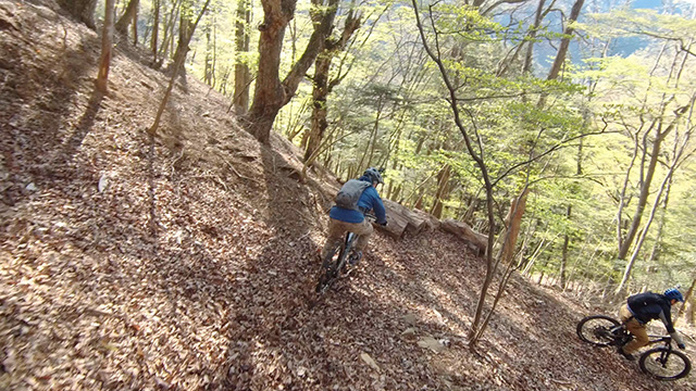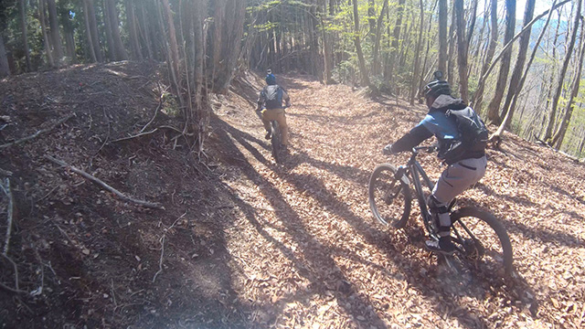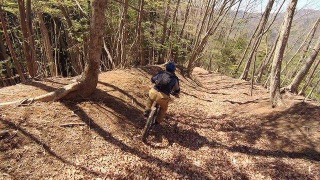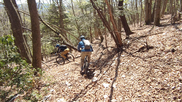 いく先のダイナミックさ走りがいのある理想的なトレイルが続いた。各人はこれまで頑張った褒美のように喜び駆け回る。こんな雄大で抜けたトレイルは理想的である。異質な情景につき再訪したもののまるで違う道程に思えた。成り立ちの変化に富みトレースすべきラインを掴みやすい道なりだ。なぜこれまで来ないかと同志に問われるほどの愉快なトレイルだったのだ。さて初探索の行程は終盤ルートである。以前は尾根末端までフル縦走したのだが西方面に折れる支尾根を巡ることにした。それは掘割が続き傾斜もかなりあり工程一番の愉快なエリア。行き着く先は夢のような桃源郷とも言える爛漫なヤマツツジの群生に迎えられる。美しき情景を仰ぎ幸福感に浸るよう皆感激したのだった。