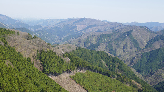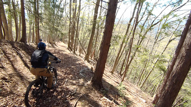 昨4月初旬もう少しで山梨に迫る界隈山径を征く。三合目までは観光モノレールにて登り迫る尾根筋に期待を寄せる。目指した1200mピーク部は冷え防火帯の霜を踏みながら降下する。本命の支尾根へ差し迫りパスハントするが、進むうち谷側に落ちたオフキャンバーが醜くなりすぎた。やがて尾根上に乗ると10年前初走時とは違う落葉樹が広がり情景を仰ぎながら進み行く。かつては梅雨で鬱蒼とした深緑を進んだので、拓けたその展望に驚き感動しどうしだった。けして激走ではなく悠々と駆けるは幸福感を得られる理想的な尾根筋であった。