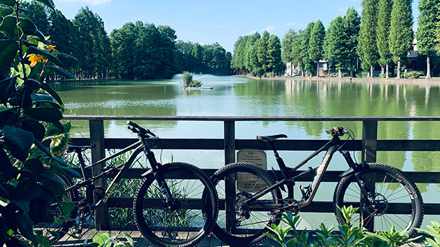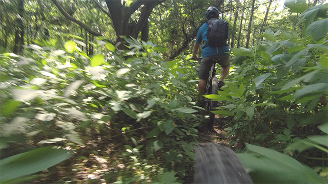 同志M君の新鋭機種納車より2ケ月の7/17共に西方湖畔へ自走クロスカントリーへ。街頭を抜けるまでは地熱あわせた猛暑ラン。日陰を縫うように湖畔へ辿り着く。たった1時間走だけでヘトヘトで湖の滸でクールダウン。あとは地域のバックカントリーを巡るが林間はかなり涼しい。虫や藪も大盛りだが、街路の灼熱を忘れるようにペダルを蹴っていく。